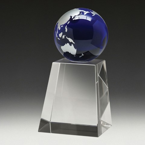 Blue crystal globe on base supplied in a gift box. A nice and eye catching award to mark success and recognition.