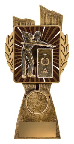 This Antique Gold Lynx Trophy is the perfect theme award for Snooker / Pool events. Featuring a classic wreath and vibrant design, trophies are customisable and available in 4 impressive sizes.