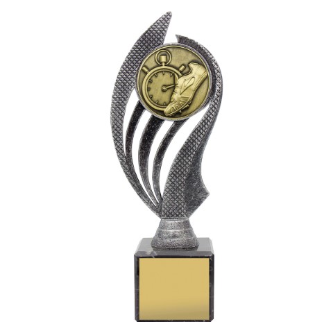 Husky series of trophies on premium black marble allows for different award options for your activity. Appealing antique silver and gold combination over number of sizes.