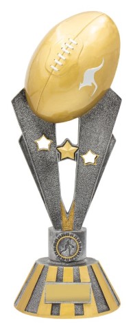 Classic footy trophy offers 3 mega sizes that will be the highlight of any Aussie Rules team presentation or footy club event. The silver & gold Glory Series is an award perfect to celebrate the achievements of your top player or team.