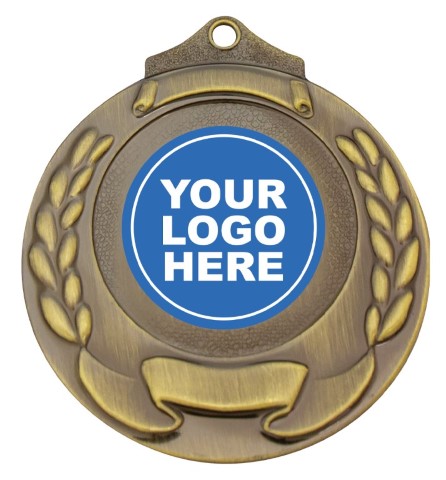 Banner Wreath medal series with space for 25mm insert. Available in gold, silver and bronze. Inserts in all sports to choose from or you may have a customised option to use. Ribbons in all colours and medal presentation boxes also available.