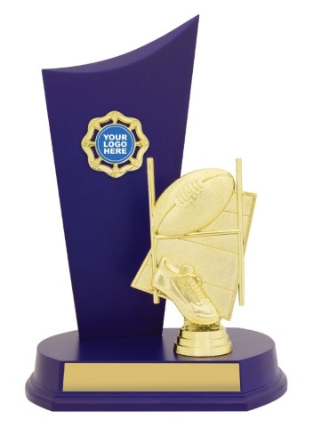 Striking series of timber wing based trophies – multiple sizes and space for your logo insert. Tops for all sports available.