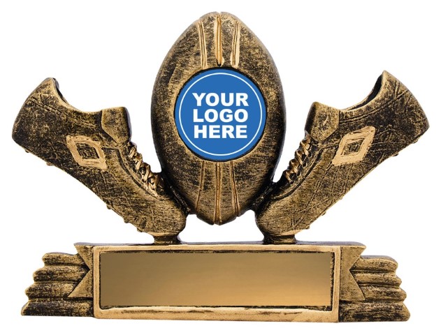Traditional and affordable trophy item suitable for bulk orders. Iconic gold trophy with boots and ball and central space for a 25mm insert – generic theme or club logo if required