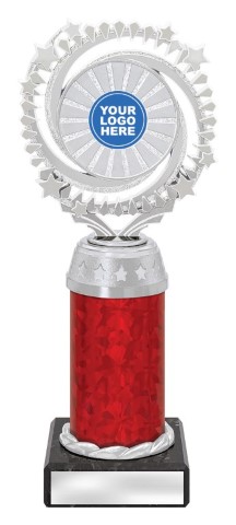 Cosmic series of affordable trophies feature star spangled holder in gold or silver – choose colour of column to suit your order. Suit 25 or 50mm centre insert.