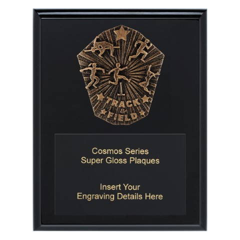 Range of super gloss plaques in classic black with brilliant Cosmos fronts and matte black engraving. Choose plaque – available in 3 sizes – to suit your sport or activity.