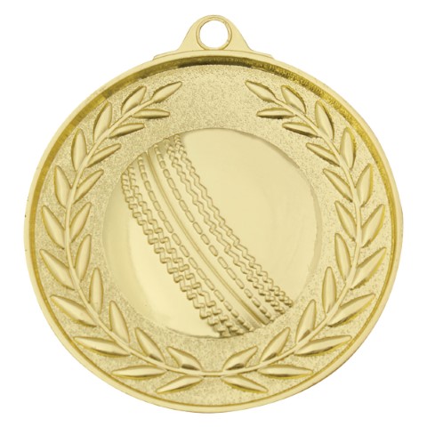 Classic & traditional wreath inspired medals for cricket. A generic theme suitable for all players, medal design features the iconic ball and celebratory wreath representing high achievement.