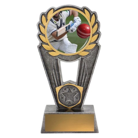Polaris series offers a striking design of trophy with excellent options for personalisation. Trophies showcase a theme featuring a cricket batsman in action. Space for your 25mm logo if required.