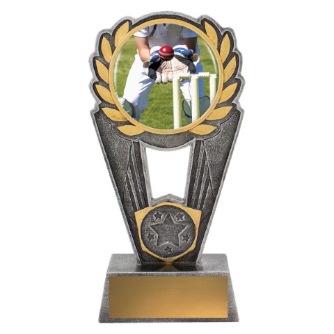 Polaris series offers a striking design of trophy with excellent options for personalisation. Trophies showcase a theme featuring a wicketkeeper in action. Space for your 25mm logo if required.