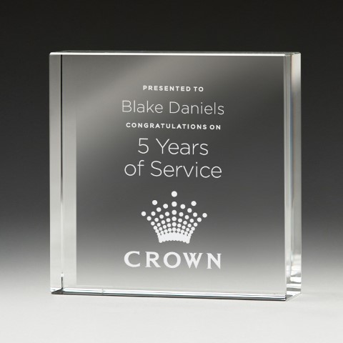 Bold Crystal Award offering broad scope for personalisation. The design of the Vault keeps it simple so your message of recognition will justly stand out as a consequence.