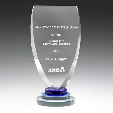 The Phoenix Crystal Victory showcases an iconic champion design that will be perfect for elite trophy presentations and events. The award combines clear and blue elements for an alluring effect.