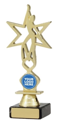 Series of dance trophies feature bright gold top representing an abstract dancer in star background. Effective design also allows for space for your 25mm insert.