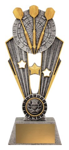 Classic Darts trophy series featuring the iconic darts on board design, finished in traditional silver and gold colours. Ideal for players of all ages, Darts trophies available in 3 convenient sizes, with the space for a 25mm club logo if required.
