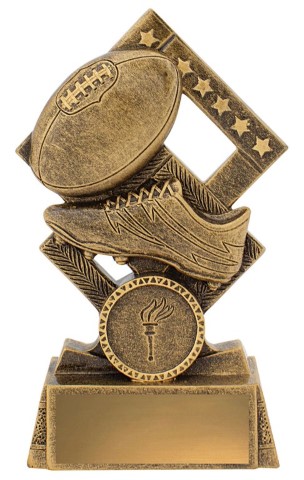 Excellent pair of footy trophies well suited for larger club orders feature boot & ball design and eye-catching multi-star elements. Great position for your club insert.