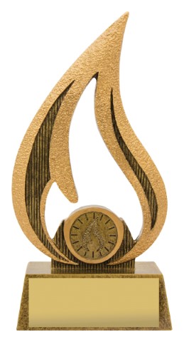 The Faith Flame series is an effective option to celebrate the achievements of your award winner. A victory flame inspired design finished in bright trophy gold and contains a space to showcase a 25mm insert according to your order requirements. Series available in 3 sizes.