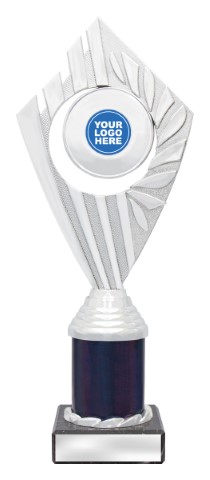 Flyer Series of trophies feature beautifully designed holders on columns of different colours – option to showcase 25 or 50mm logo or insert.