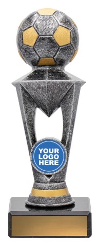 3D style football trophy offers a great value trophy with substantial size on black marble base.