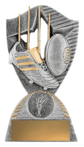 Brilliant footy trophy for your team or club. The Gambit offers a dynamic theme in antique silver & gold – space for your custom logo.