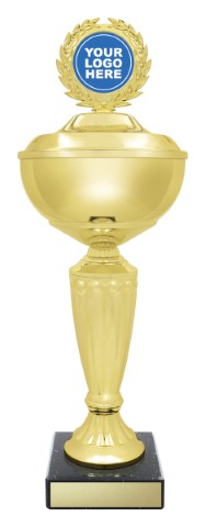 Elegant & classic line of trophy gold cups with prestige black marble. Cups completed by the traditional logo holder to show your custom design. Available in different sizes.