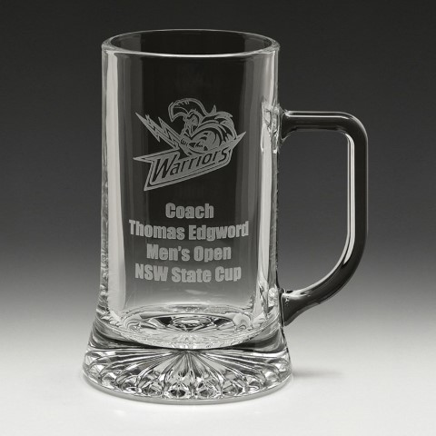 Glass tankard part of the range of premium glassware on offer. A popular engravable award and gift idea particularly suited to recognise the achievements of your sporting club or team.