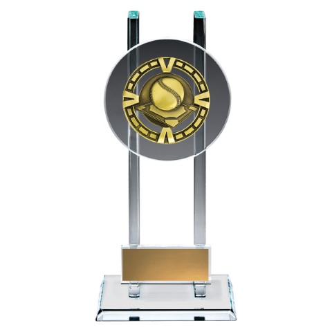 Bold glass awards are perfectly suited to recognise the top achievements at your team or club. Elevated glass platform showcases a brilliant metal theme for your sport or activity – space for your engraving as well.