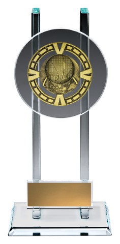 Bold glass awards are perfectly suited to recognise the top achievements at your team or club. Elevated glass platform showcases a brilliant metal theme for your sport or activity – space for your engraving as well.