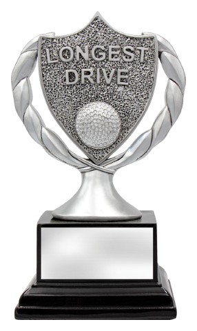 Wreath inspired trophy shield, this golf award finished in antique silver is perfect for your Longest Drive competition. Just one particular option in our vast golfing trophy range.