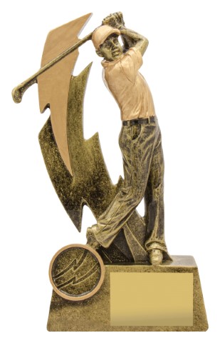 Golf Shazam series showcases the golfer in action with excellent detail and design. Golf trophies completed in classic trophy gold colours and available in 3 sizes. There is the option if required of including your logo.