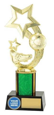 Exciting series of football trophies that features distinctive star theme top and space for your custom logo. Change colour of column to suit.
