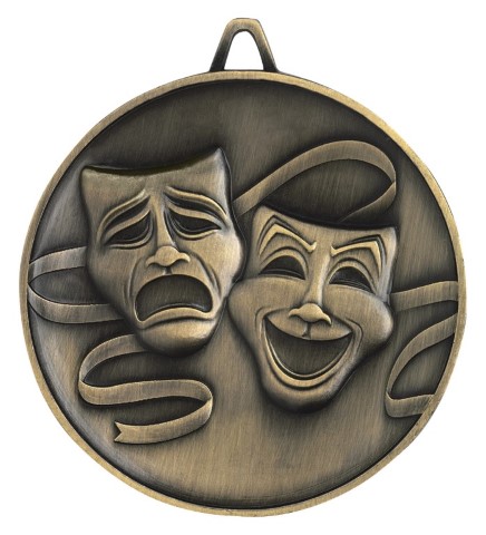 The Budget Heavyweight series offers prestige antique gold medals for a range of sports and activities at great value. The Drama medal features an elegant design that highlights the iconic drama masks.