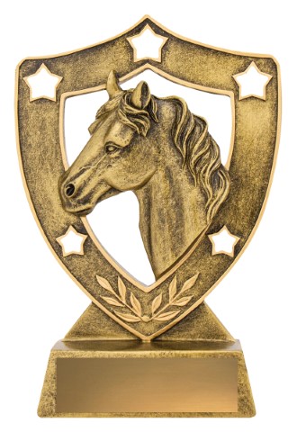 Classic wreath and shield inspired design, the Horse Trophy Gold Shield is an affordable and popular award choice. A versatile generic theme award that is available in 3 convenient sizes.