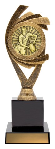 Dynamic design of holder trophies rendered in antique gold colours – male or female available.