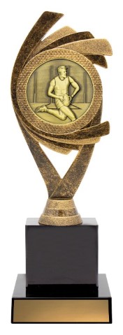 Dynamic design of holder trophies rendered in antique gold colours – male or female available.