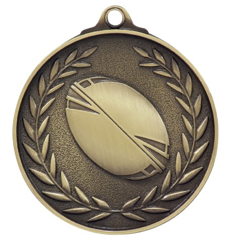 Classic & traditional wreath inspired medals for Rugby League. A generic theme suitable for all players, medal design features the iconic ball and celebratory wreath representing high achievement. Available also in shiny gold, silver and bronze. Ribbons and boxes to suit.