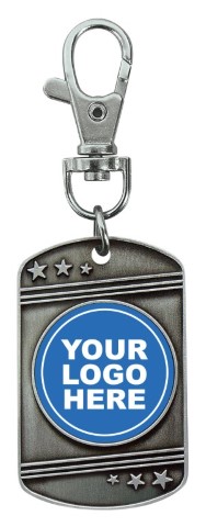 Charming tag to showcase your logo or sport – finished in classic antique silver. Space on the back for engraving. With handy keychain style attachment.