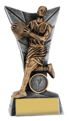 Dynamic silver backdrop for this trophy series frames the detailed player captured in action. Finished in antique gold, this player series is available in male and female and in multiple sizes to suit your award needs.