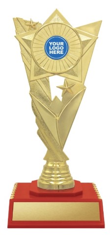 Star inspired holder on red bases to showcase your custom or club logo. You can change the colour of the base to suit your particular awards.