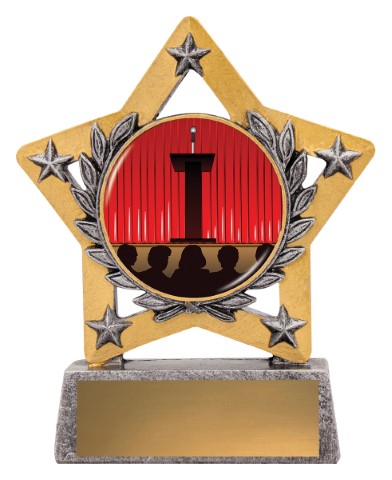 Star inspired design with traditional gold and silver colours – showcase brilliant colour image for your sport or activity. Mini stars offer great value.