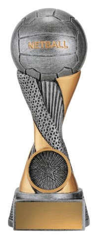 Apex trophies for Netball offer the combination of elegant design, multi-textured elements and brilliant silver & gold colours. Central space for your logo.