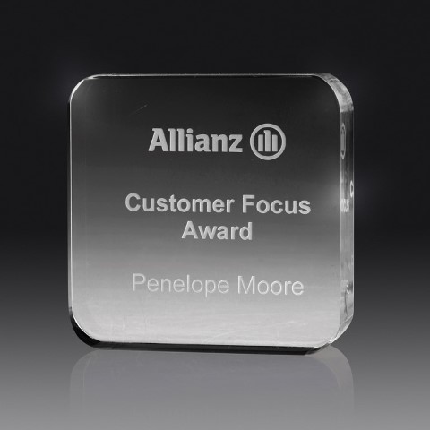 This acrylic paperweight offer a design potentially suitable for a range of recognition purposes. An affordable option, the Paperweight Award can be given to recognise team or individual success or be given out for gift and promotional reasons. Acrylic will allow precision engraving for text and logo requirements.