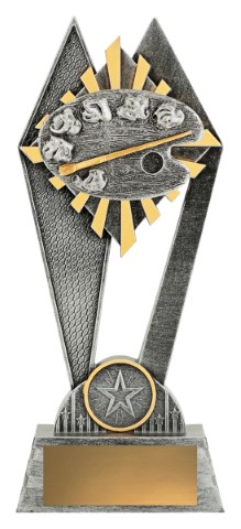 The Peak Series is an innovative trophy series offering super value for such an impressive size range. An elevated design that features an easel and brush against a vibrant sunray style background. Available in 3 sizes.