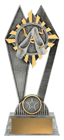 Peak style trophies – for Ballet – offer fantastic value for bigger series of trophies available in 3 sizes. Design showcases key elements for Ballet against vibrant sunray background. Trophies finished in classic antique silver and gold highlights.