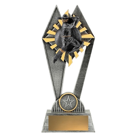 The Peak Series – for Cricket – is an innovative trophy series offering super value for such an impressive size range. An elevated design that showcases a male batsman theme against a vibrant sunray style background.