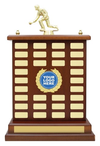 Outstanding perpetual trophy with ample space for your engraving – select holder for your logo and top for your sport or activity.