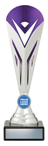 Brilliant Purple & Silver trophies with innovative cup design perfect for your special award winners. Cups available in 3 great sizes and feature modern design and different textures. Black marble bases provide extra prestige.