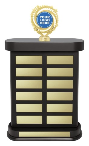Excellent perpetual award featuring classic black finish & broad space for your engraving requirements. Rampart perpetual features trophy holder to showcase your custom logo.