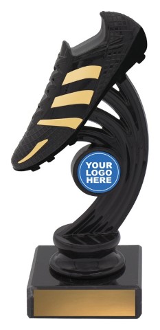 Inspired series of trophies featuring a realistic boot in motion and finished in an exciting black & gold combination. Suit your club logo – multiple sizes available.