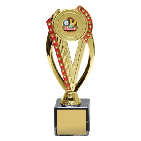 Trophies available in green, red and blue make an excellent series for events with 3rd, 2nd and 1st place winners. Space for 25mm centre insert.