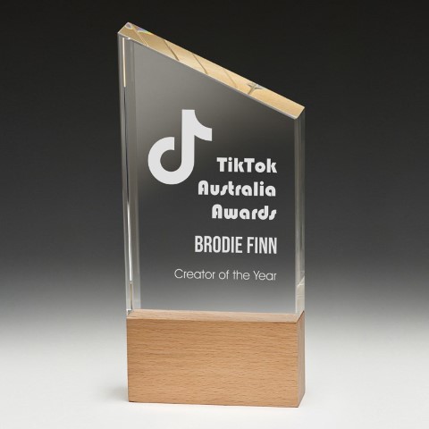 The Ridgeline presents a standout trophy design with expertly crafted crystal and wood elements. A standout award that allows for flexibility in terms of your personalisation.