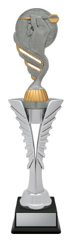 Silver Spear trophies showcase a brilliant top on a distinctive “spear” riser – the top finished in antique silver. Available in 3 sizes.