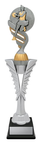 Silver Spear trophies showcase a brilliant top on a distinctive “spear” riser – the top finished in antique silver. Available in 3 sizes.